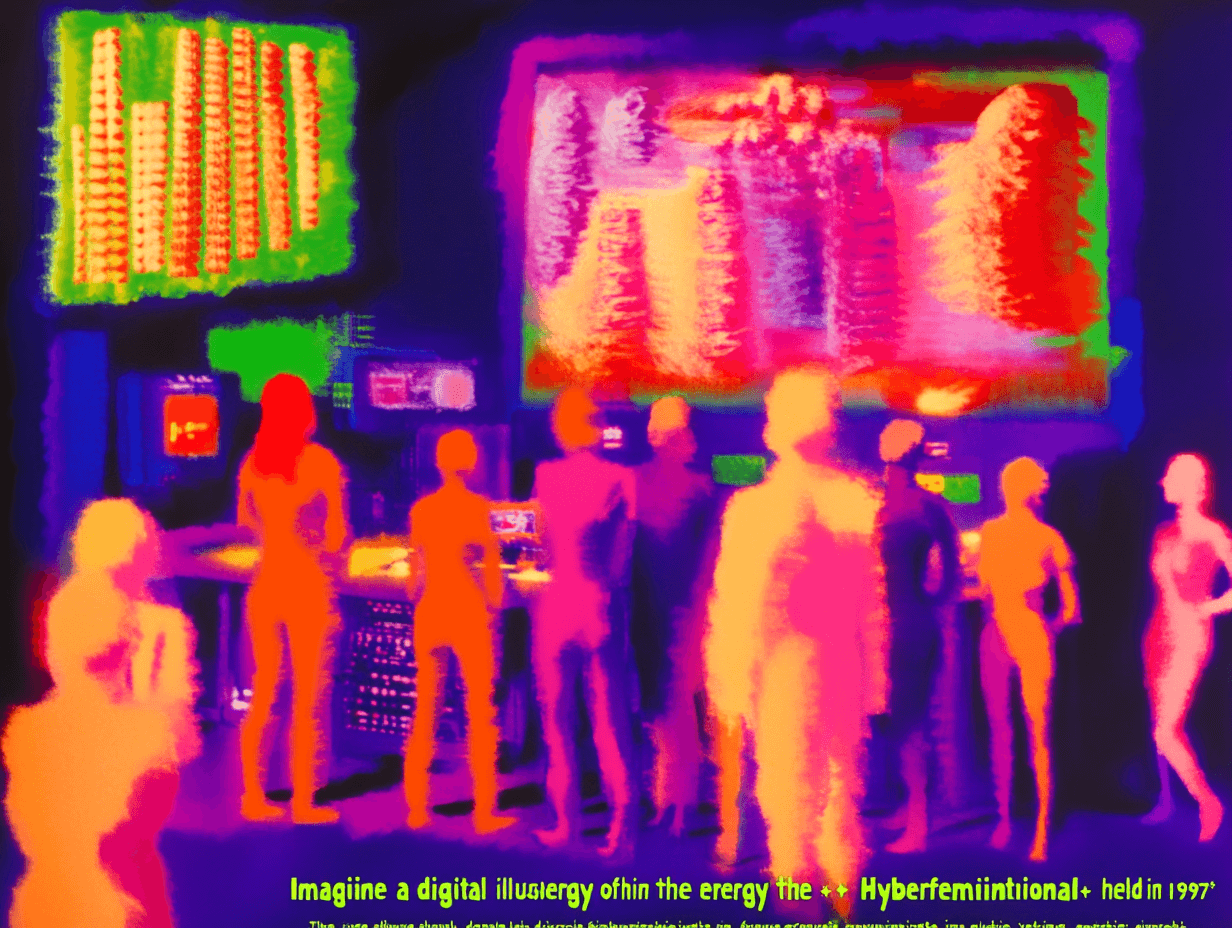 Il 1997, anno in cui esce Zeros + Ones di Sadie Plant, coincide con un evento fondamentale per il cyberfemminismo: un gruppo di 40 cyberfemministe si riunisce per otto giorni a Kassel, all’interno del contesto The Hybrid Workspace, parte di Documenta 10, per il First Cyberfeminist International. Durante questo incontro, si dedicano alla definizione di ciò che il cyberfemminismo non è, formulando 100 antitesi. Partecipano a conferenze e dibattiti, discutendo di networking, webgrrrls, geek girls, collettivi come FACES e Old Boys Network (OBN), oltre a pubblicazioni online, prospettive di carriera e mailing list.