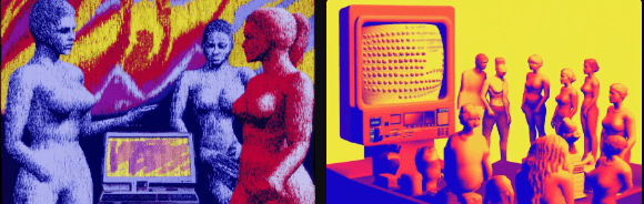 L'opera Camgirl.com: Women Creating Space for Themselves Online di Katharine Wimett rappresenta in 3D la camera da letto di Jenni, una camgirl, trasportandoci visivamente nella cosiddetta "Ballerina Room". Questa stanza, all'apparenza una camera ordinaria di una ragazza qualsiasi, svela attraverso i dettagli la sua duplice funzione: uno spazio personale che diventa, al contempo, il luogo di lavoro. Jenni è ritratta in un loop infinito, in attesa costante che un cliente richieda una sessione privata. L'opera denuncia la mercificazione perpetua del corpo femminile, evidenziando il sottile confine tra intimità e sfruttamento.